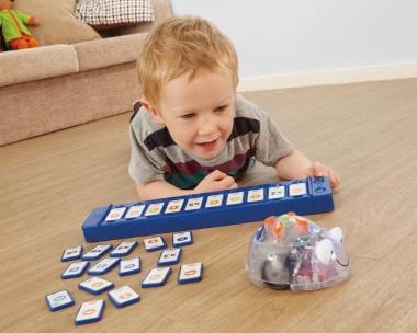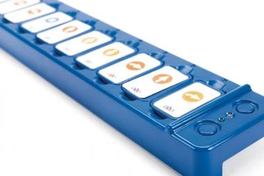 Je nachdem wie Kinder ihr Programm auslegen möchten, können die Kacheln entweder im Hoch- oder Querformat auf dem Board platziert werden. Den Blue-Bot einschalten, Connect auf dem Board drücken und warten bis die Augen von dem Blue-Bot blau leuchten – verbunden! Kinder können ein Programm mit bis zu 30 Bewegungsfolgen erstellen, um eine aufregende Alternative zu der kostenlosen App (iOS, Android und Windows 10 kompatibel) für das Smartphone, Tablet oder PC zu erhalten. Maße: ca. 400 x 80 x 30 mm, 27-teilig
