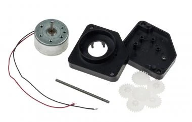 Dieses Universalgetriebe mit integriertem Motor zeichnet sich durch eine Vielzahl unterschiedlicher Drehzahlen aus, die bei der Montage frei bestimmt werden können. Je nach Anzahl der eingesetzten Zahnräder (bis 6 Stück) kann die Drehzahl den eigenen Bedürfnissen angepasst werden.
